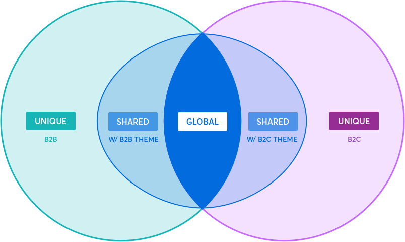 I drew a Venn diagram showing global components in the middle, consumer components in the right circle, enterprise in the left circle, and an outer layer of components unique to each line of business. From there, everyone immediately understood what we were building.