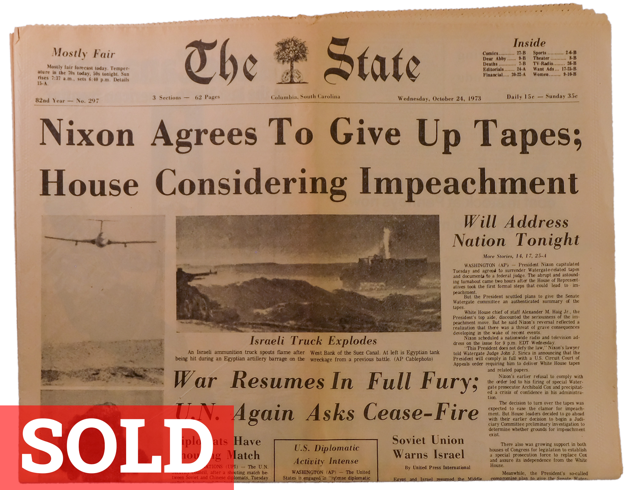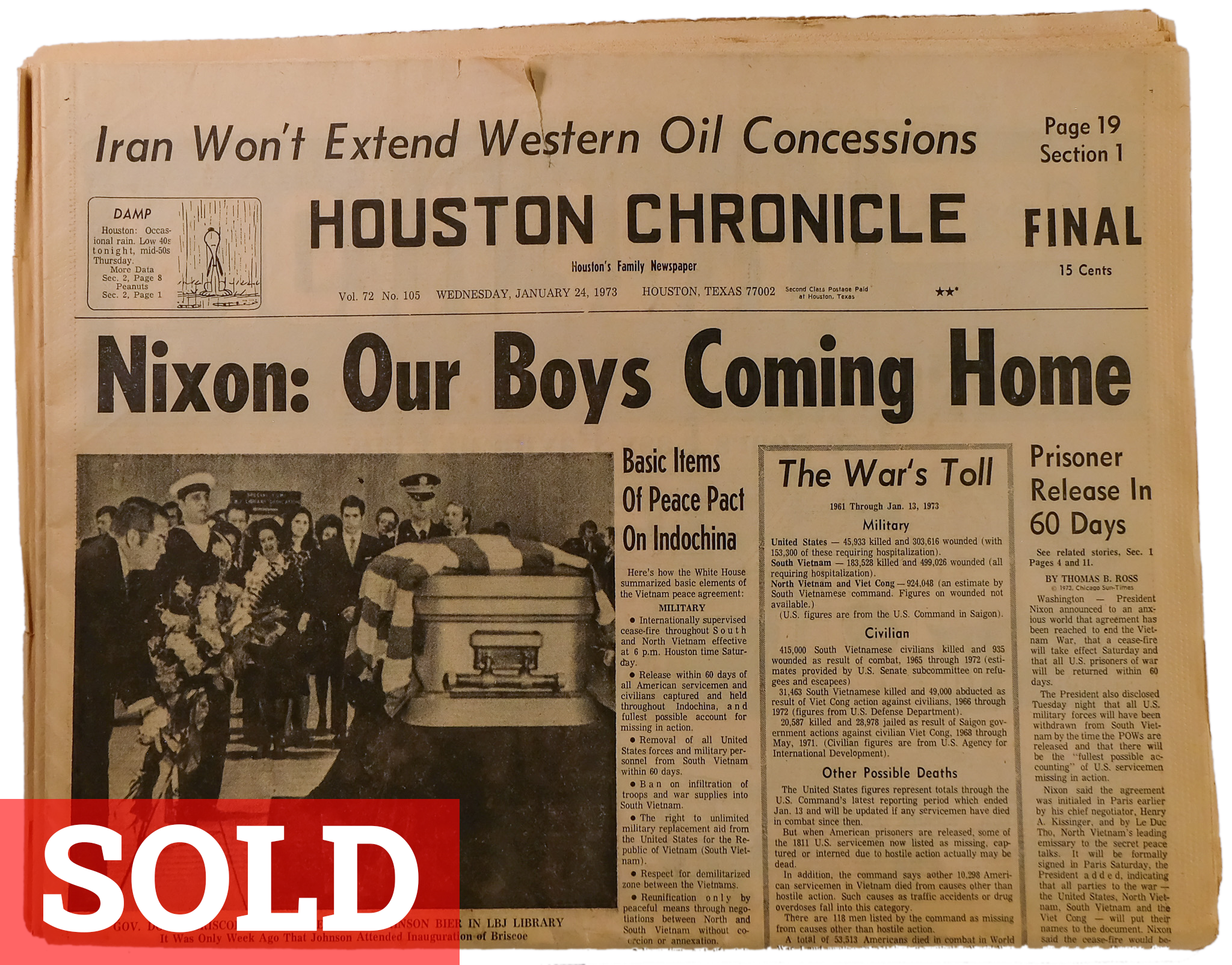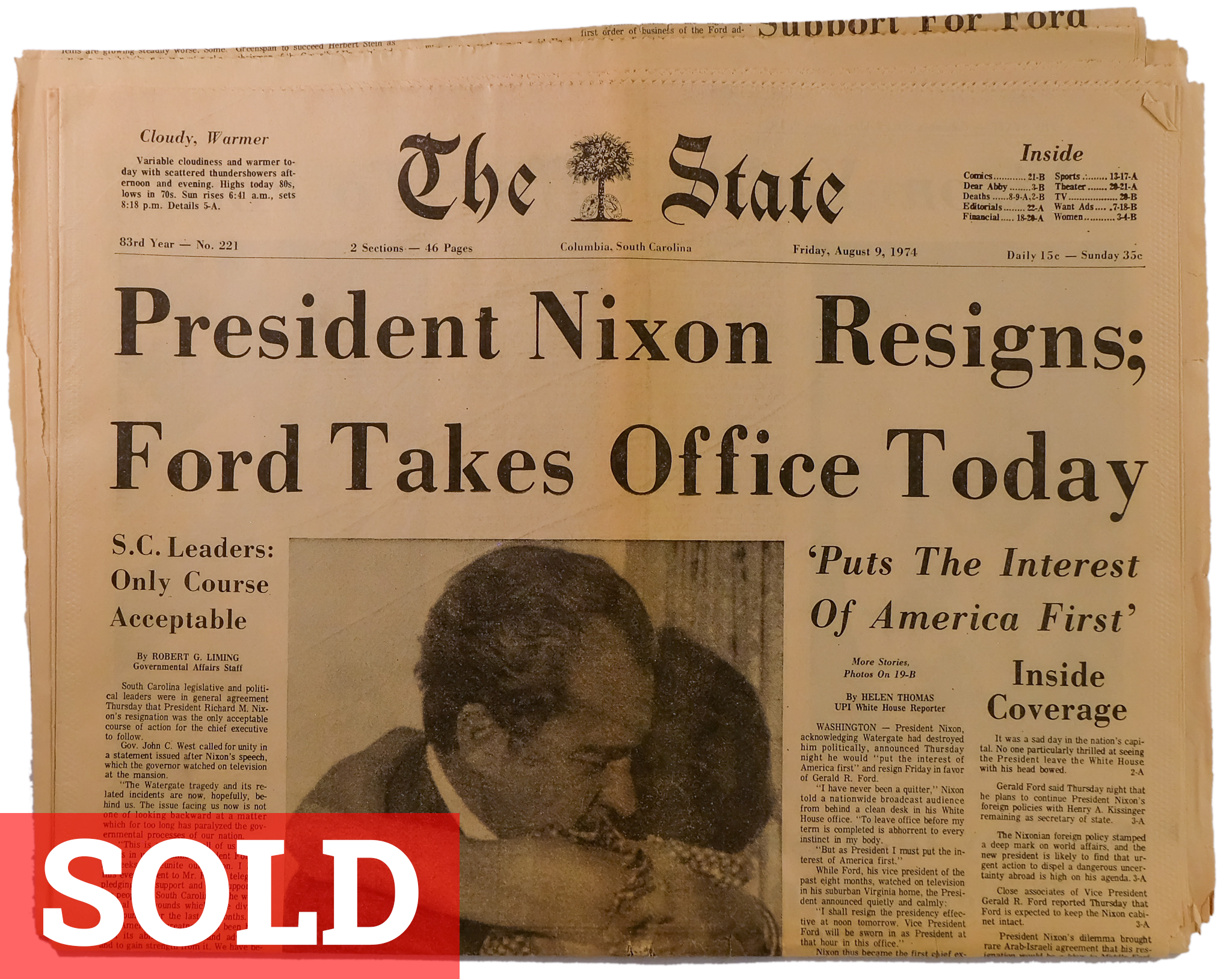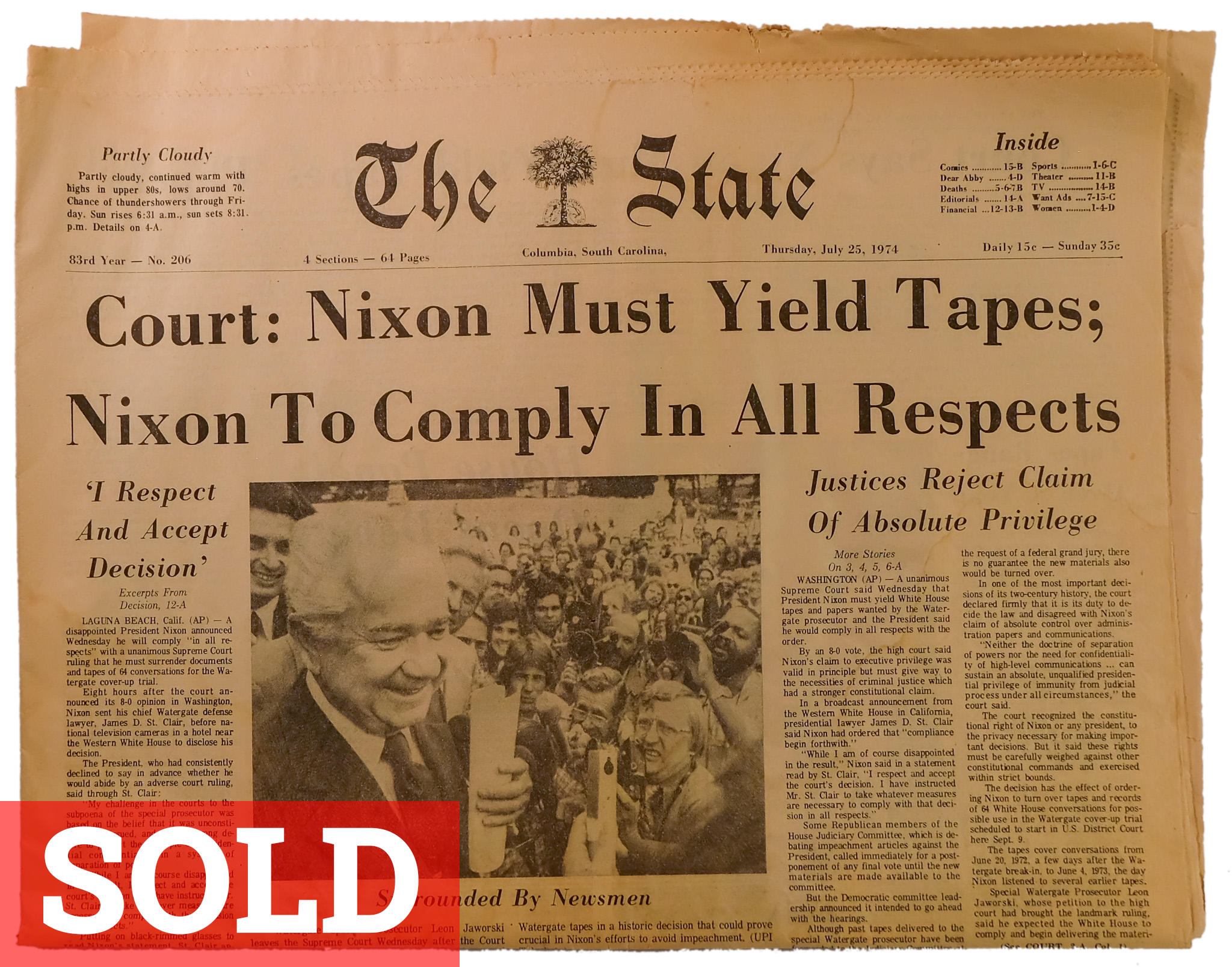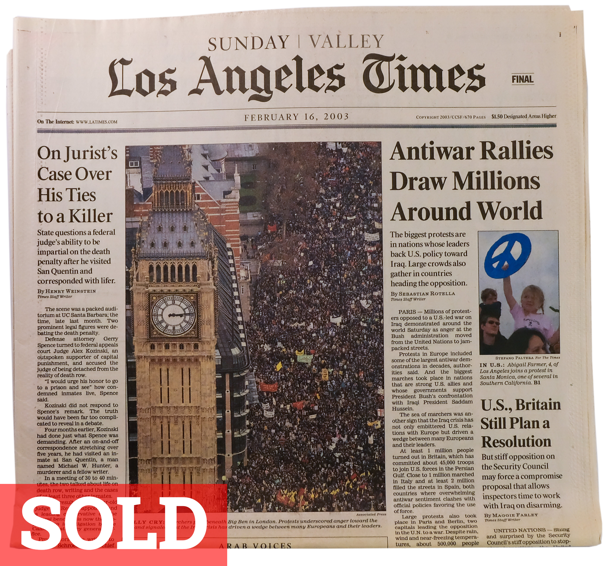 Caring for newspapers involves keeping them out of direct sunlight from the moment they’re printed, and away from moisture, humidity and extreme temperatures. They also yellow and age if they touch other paper or material that isn’t acid-free. Today, I keep my collection in individual archival Polypropylene sleeves, in drawers lined with acid-free foam board and protected from dust by a sheet of plexi glass in each drawer.