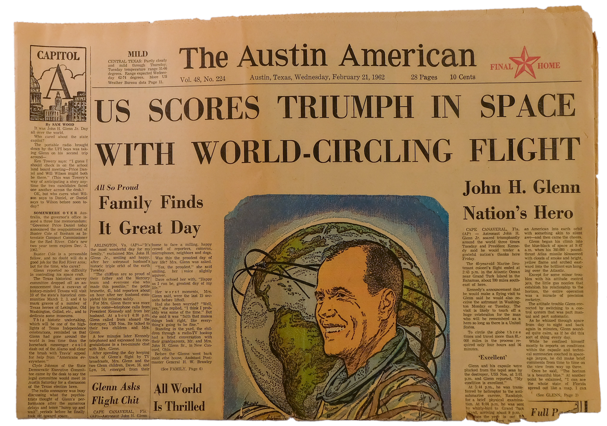 My collection spans 1945 to present day. My grandmother started the collection in 1962 with U.S. Scores Triumph In Space With World-Circling Flight. She and my dad added to the collection for the next 15 years. The last newspaper they collected was in 1977, commemorating Elvis’ death. In those 15 years they collected history — the assassinations of 2 Kennedy brothers and Martin Luther King, Jr; Nixon’s resignation; man’s first step on the moon; and the death of a King (Elvis).