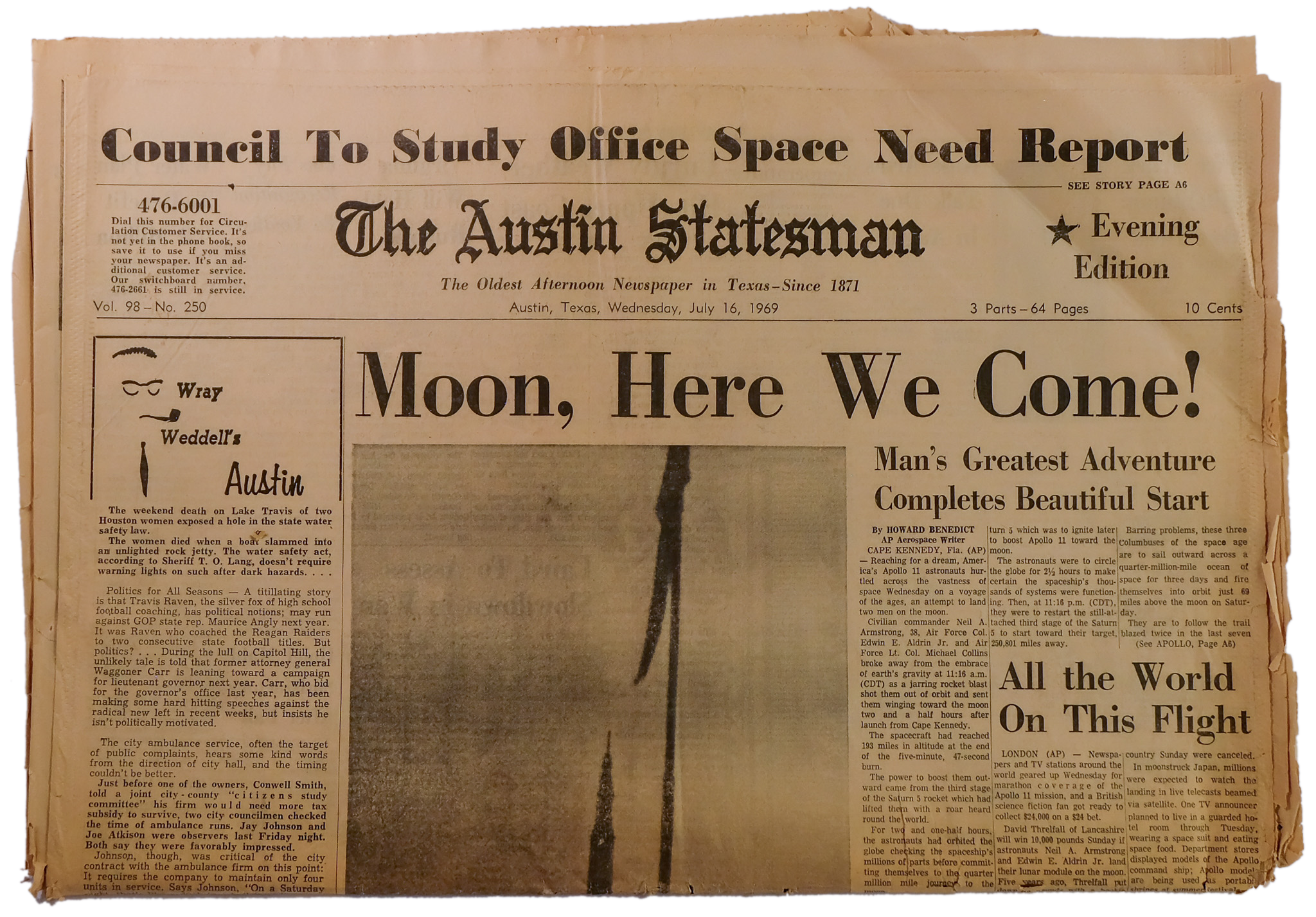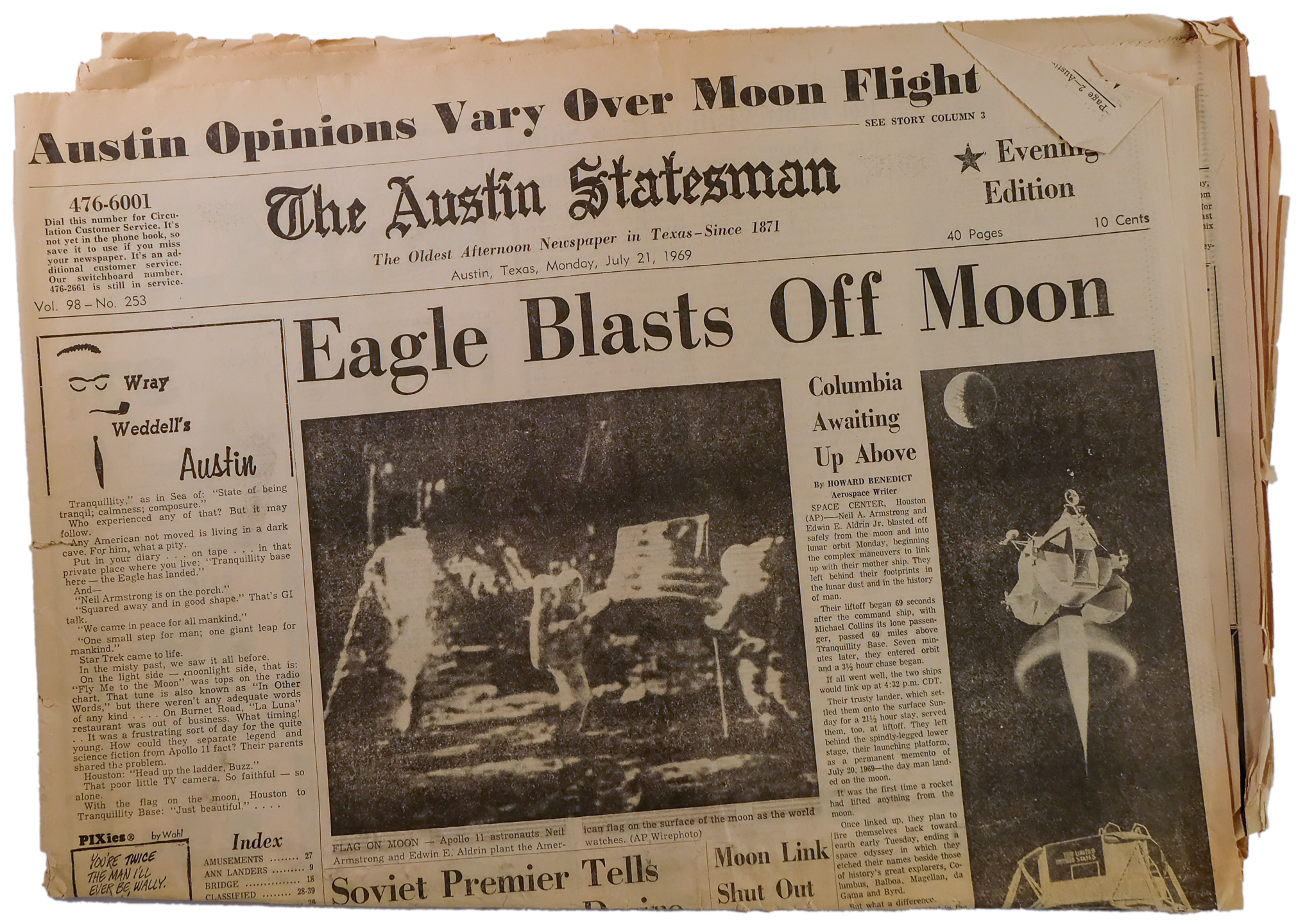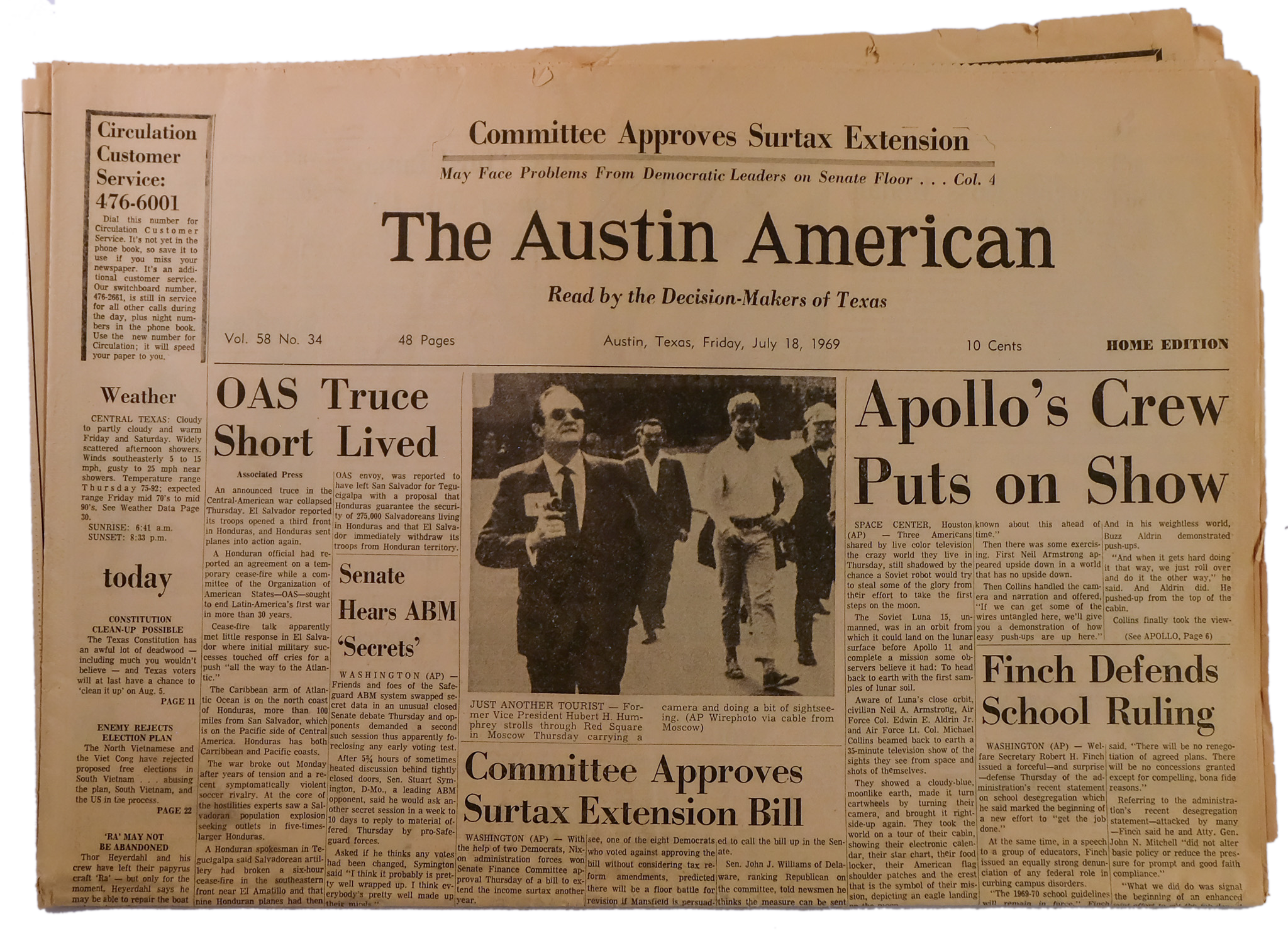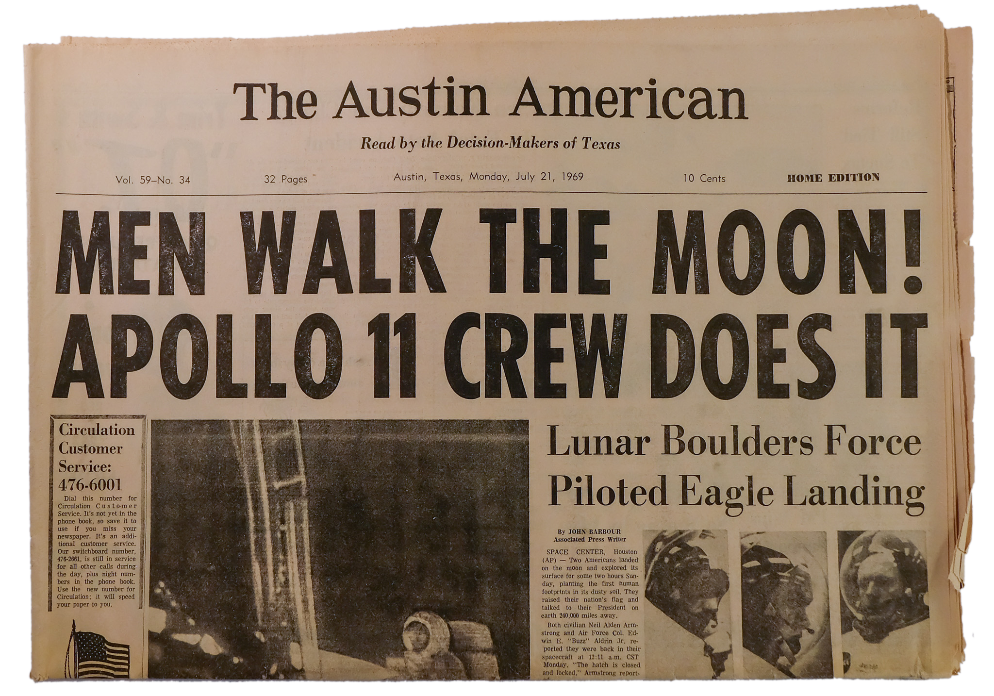 1969: The Atlantic Constitution changes their headline from black to red to commemorate the moon landing.